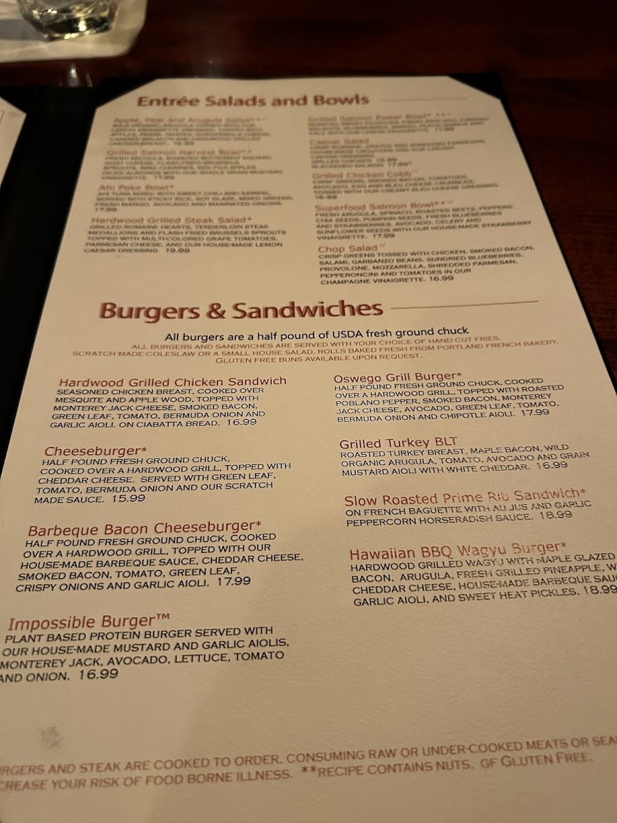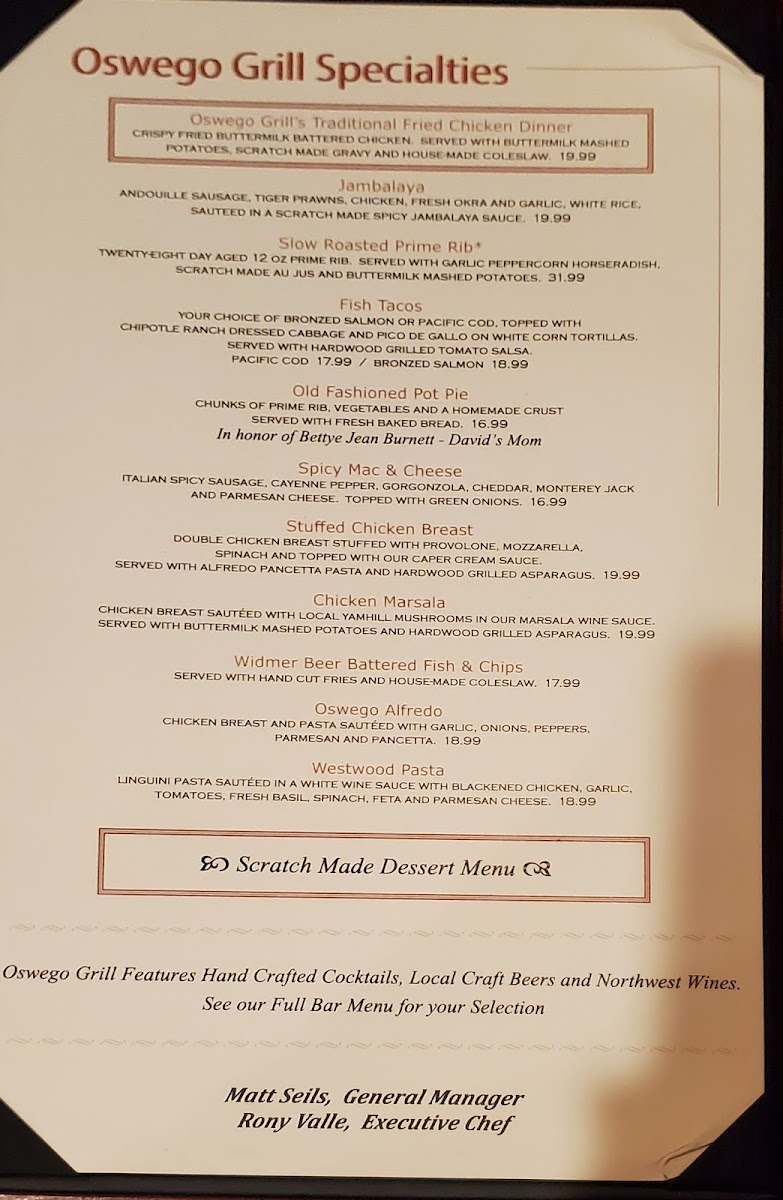 At Oswego Grill - Lake Oswego, guests are invited to enjoy a diverse and mouthwatering menu that captures the essence of a classic grill experience. Nestled in the heart of Lake Oswego, this vibrant restaurant offers everything from tantalizing appetizers to comforting main dishes. Try the New Orleans Prawns, delicately braised in coconut milk with a medley of seasonal spices, or indulge in the Gorgonzola Spinach Cakes topped with succulent crab.