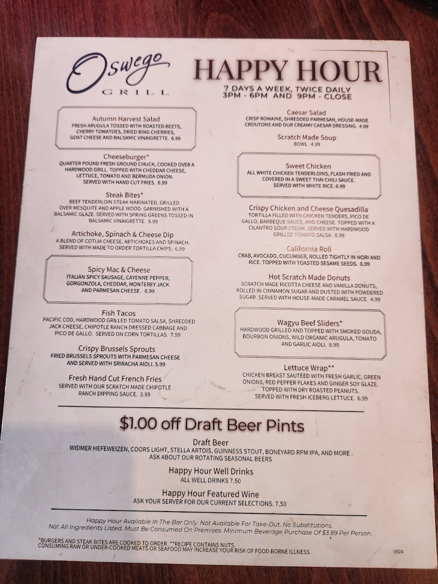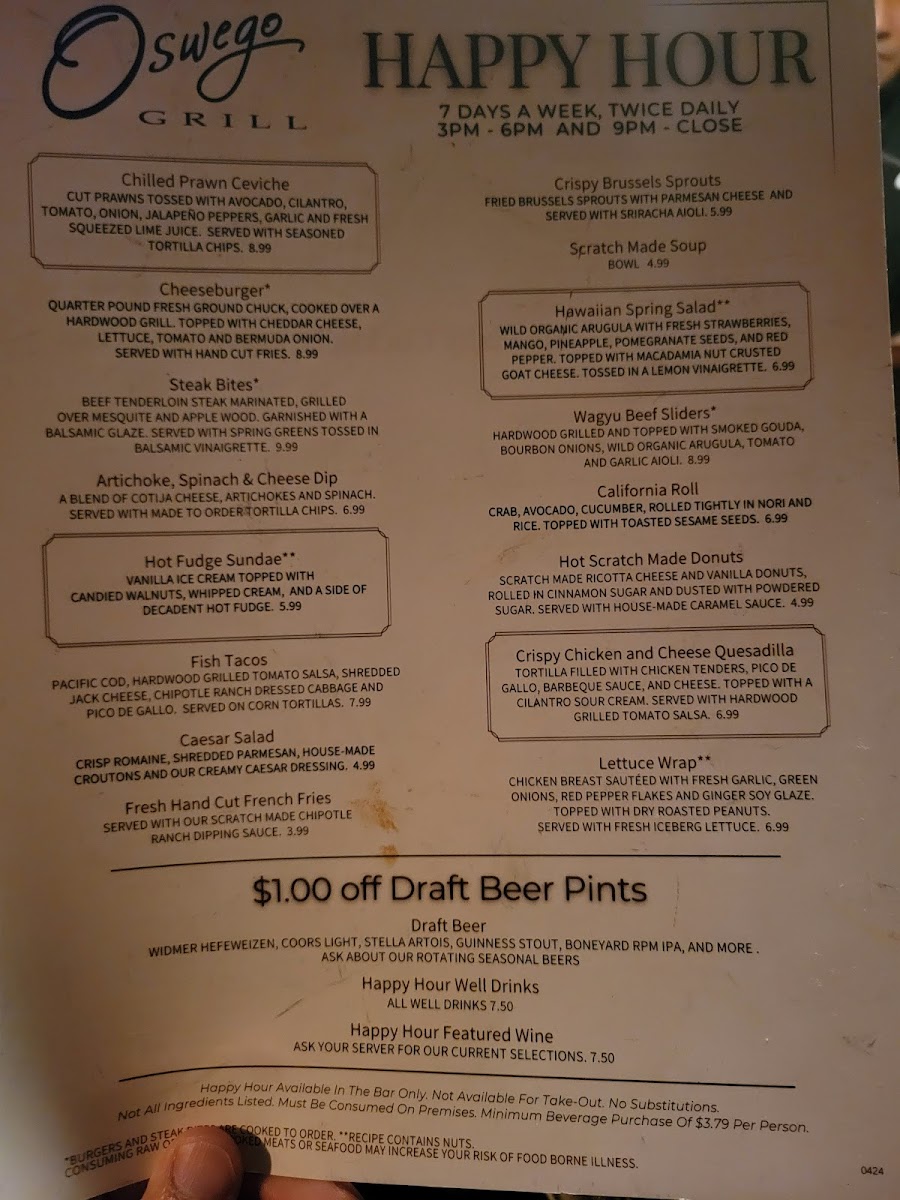 No visit is complete without savoring the delightful scratch-made bread pudding for dessert. With stellar service and a robust menu, Oswego Grill is a must-visit destination for food lovers.