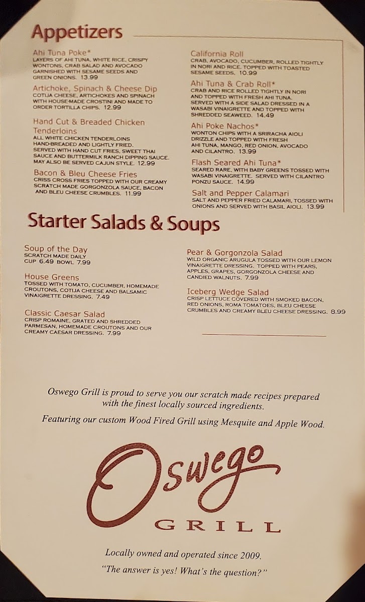 Main - Oswego Grill Classics Cooked Over A Hardwood Grill